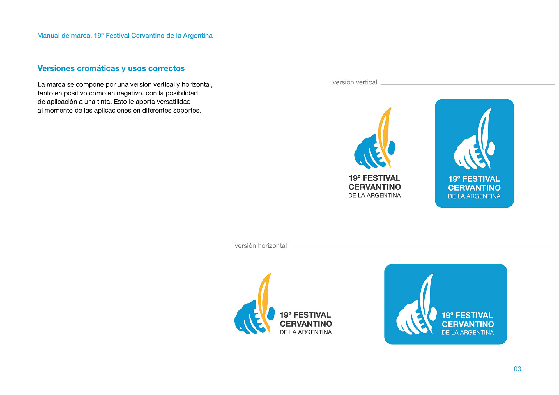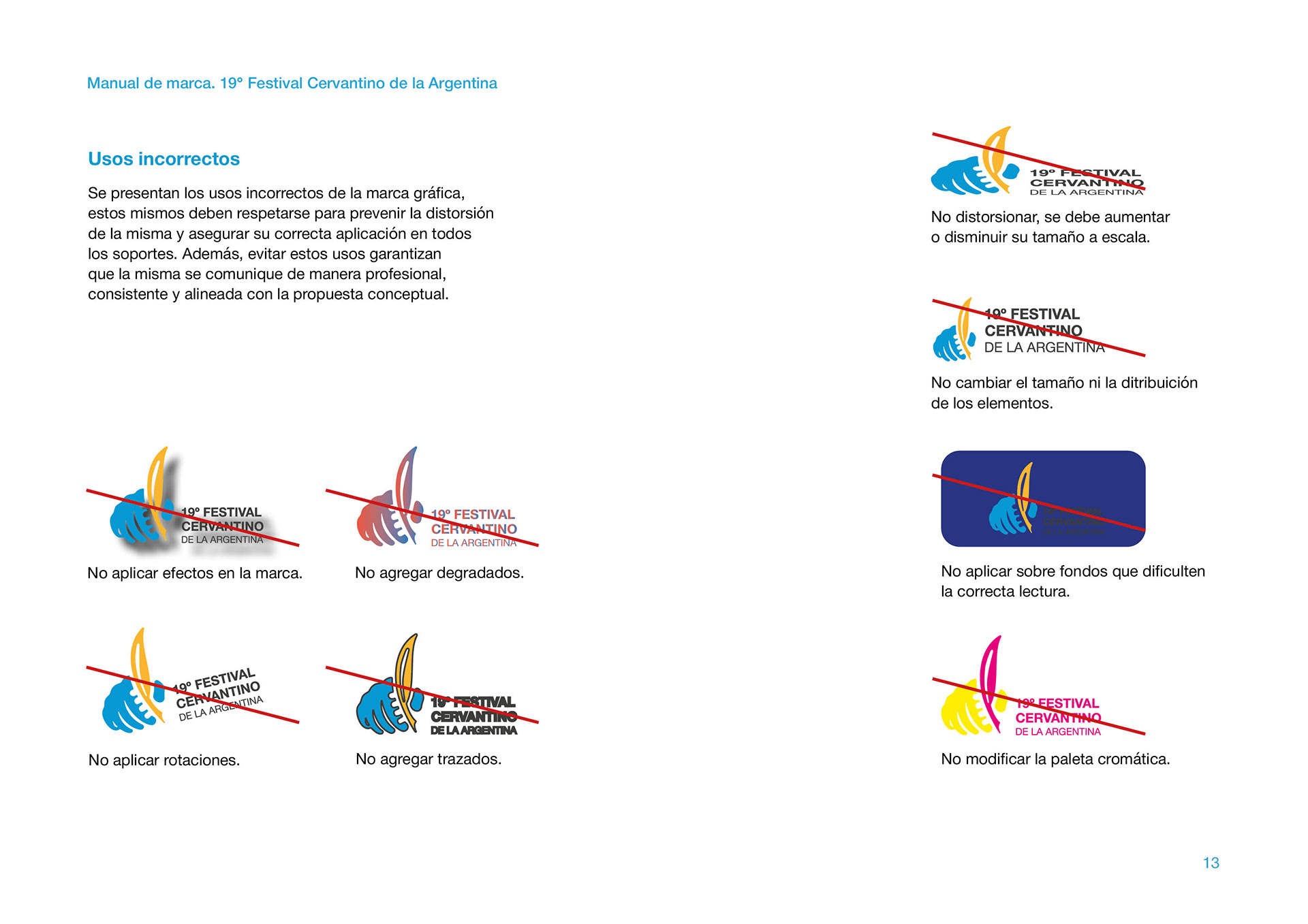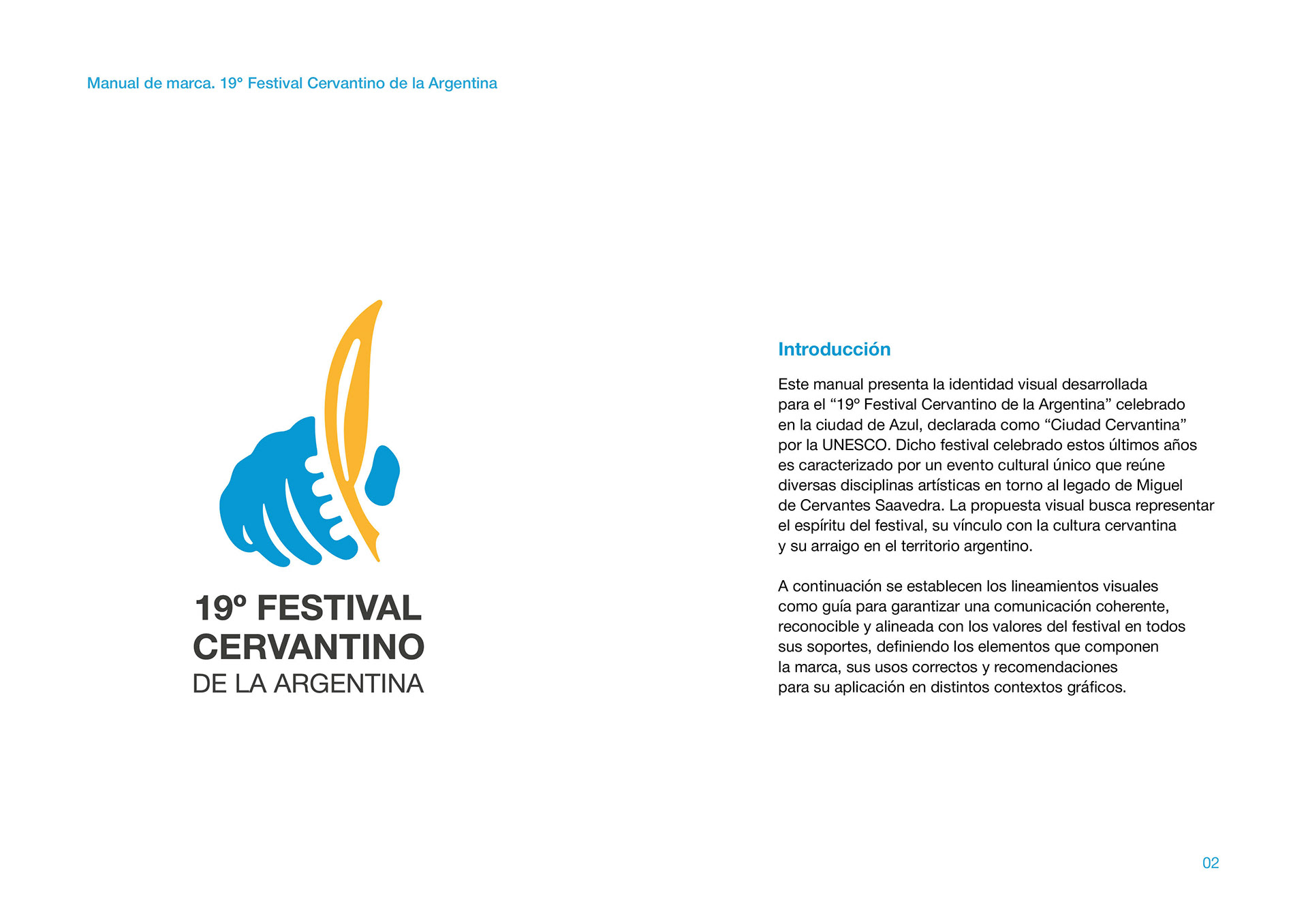 Manual de marca de la Identidad Visual ganadora en el Concurso por el 19° Festival Cervantino de la Argentina, de la ciudad de Azul, Buenos Aires.