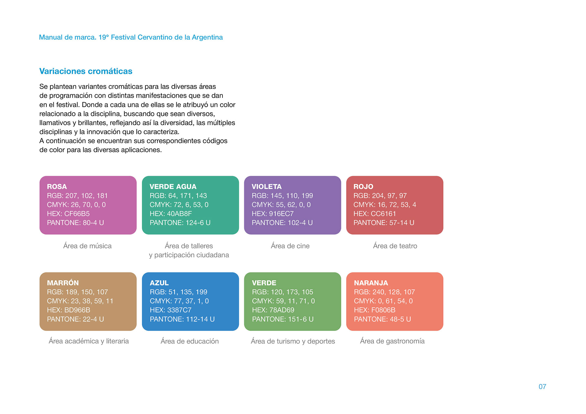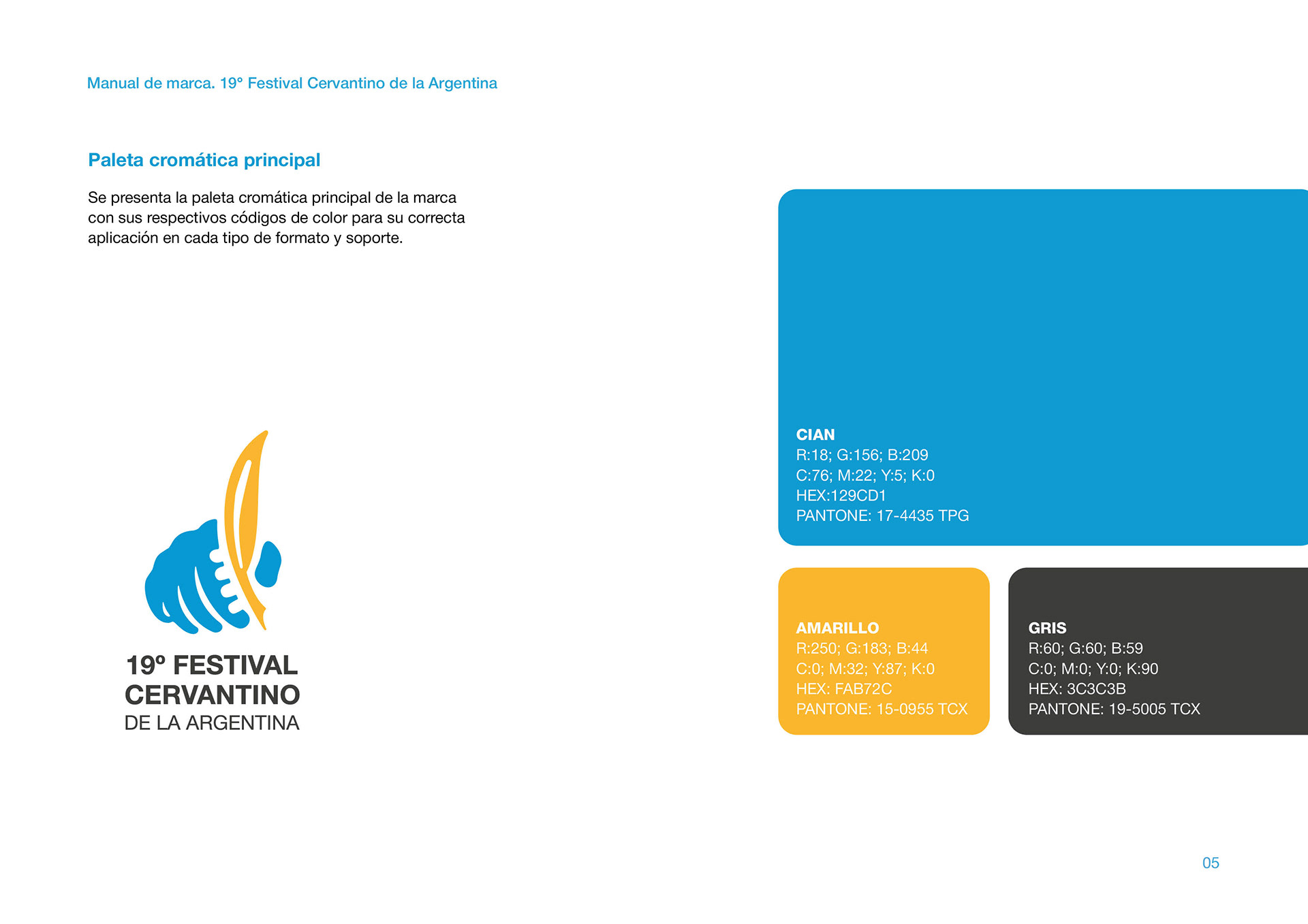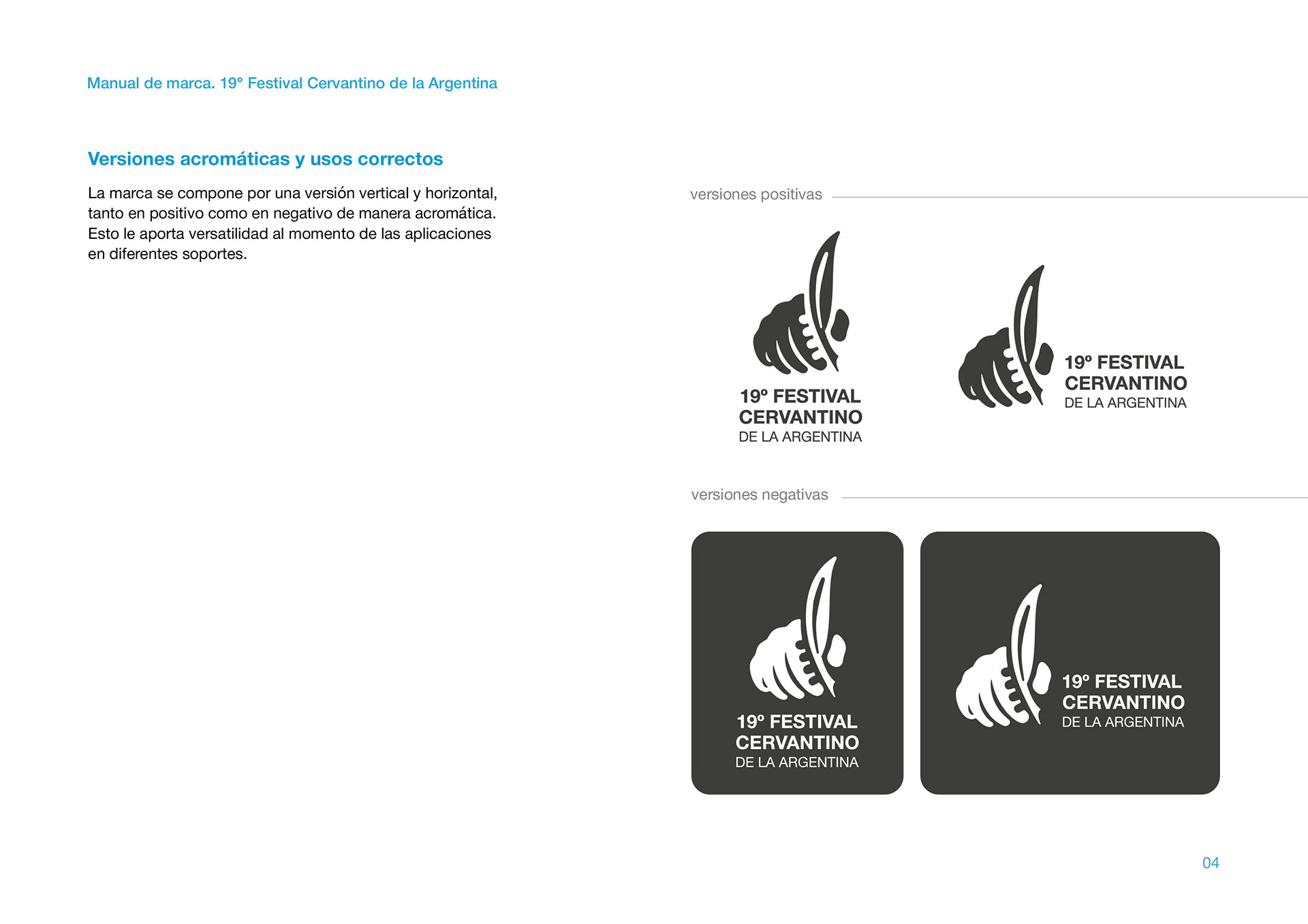 Manual de marca de la Identidad Visual ganadora en el Concurso por el 19° Festival Cervantino de la Argentina, de la ciudad de Azul, Buenos Aires.
