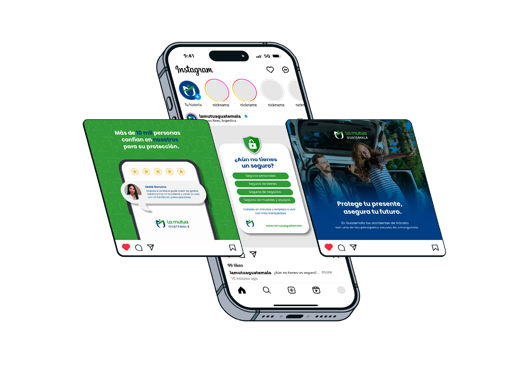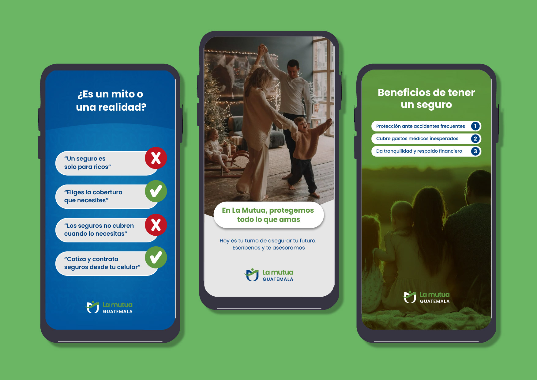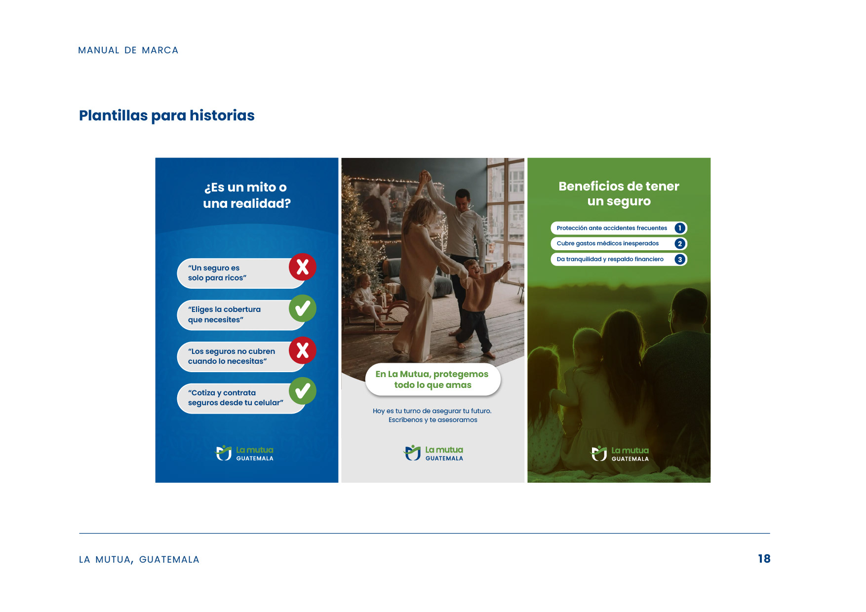 Visual identity created for the insurance company "La Mutua, Guatemala" with headquarters in Mexico and 12 years of experience.
